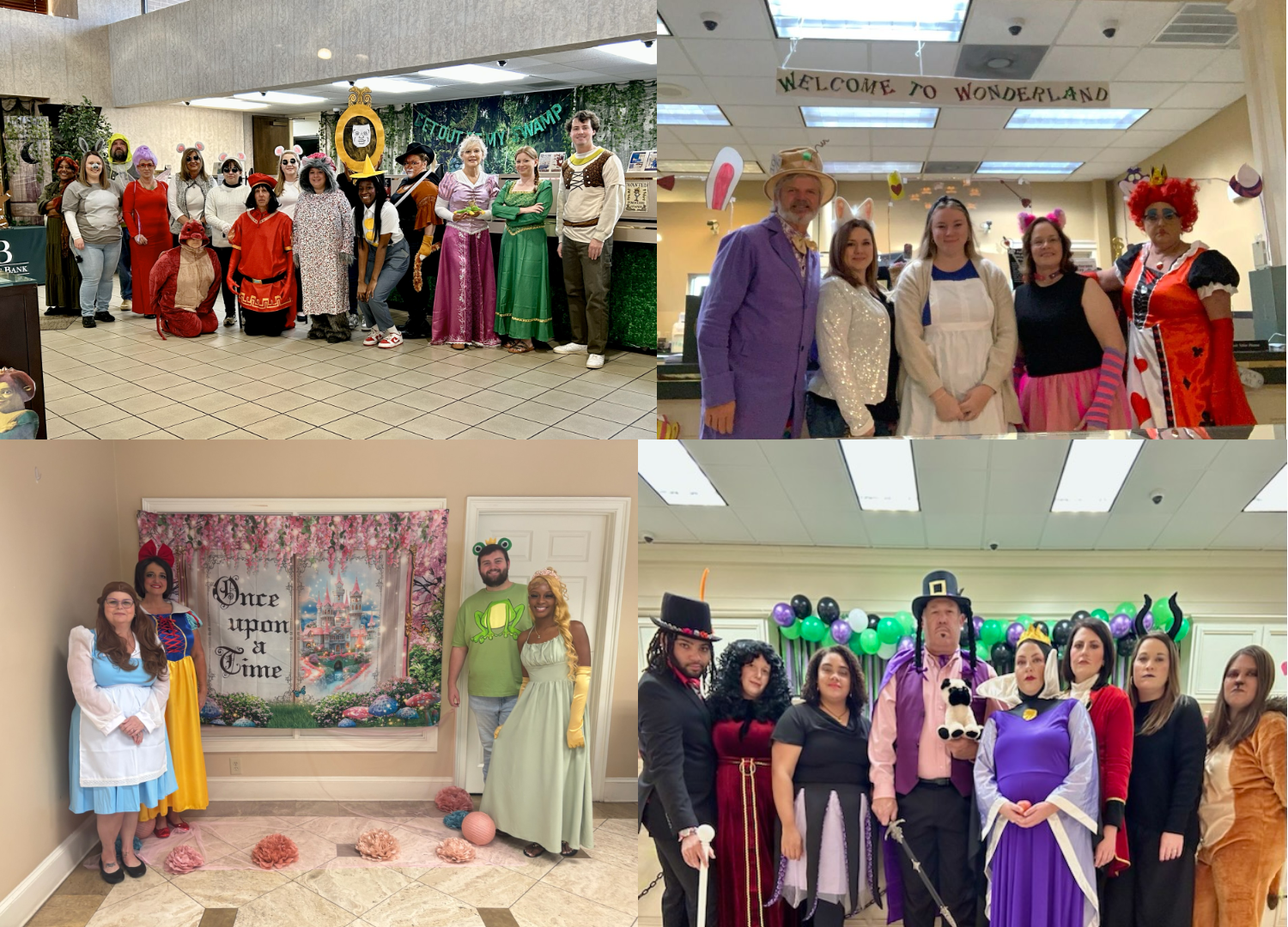Happy Halloween! Pictured above are some of our Magnolia State Bank team members that participated in our annual costume contest at each of our locations. Top left is our Gray location where Willy Wonka and a few Oompa Loompas are hanging out at their new Chocolate Factory. Top right is our Eastman location is where a Construction Crew decided to do a little remolding. Bottom left is our Downtown Milledgeville location where Riley and all her emotions decided to set up a new headquarters. The bottom right is our Milledgeville location where a tornado drops our bank in the middle of the land of Oz.